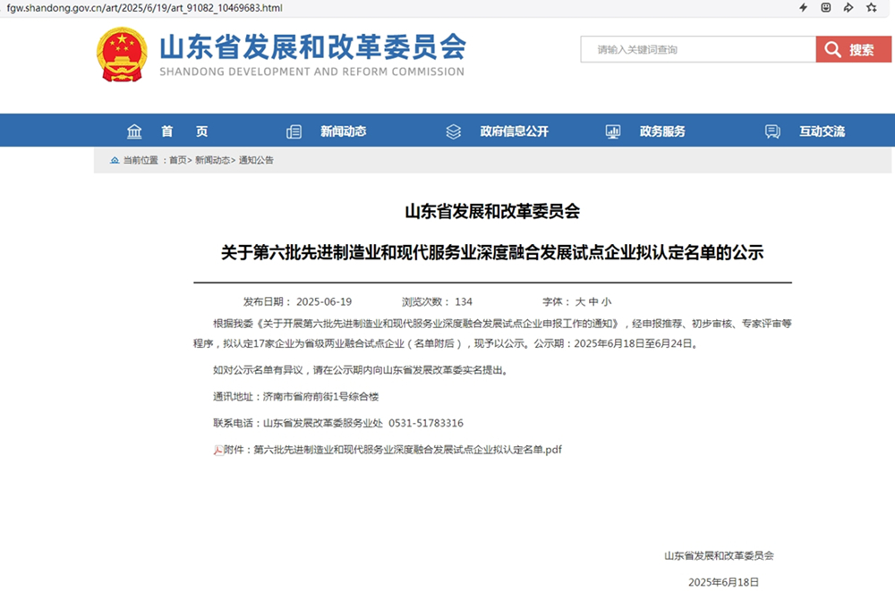 根據(jù)省發(fā)展和改革委員會《關(guān)于開展第六批先進制造業(yè)和現(xiàn)代服務(wù)業(yè)深度融合發(fā)展試點企業(yè)申報工作的通知》,經(jīng)申報推薦、初步審核、專家評審等程序,擬認定17家企業(yè)為省級兩業(yè)融合試點企業(yè)(名單附后),現(xiàn)予以公示。