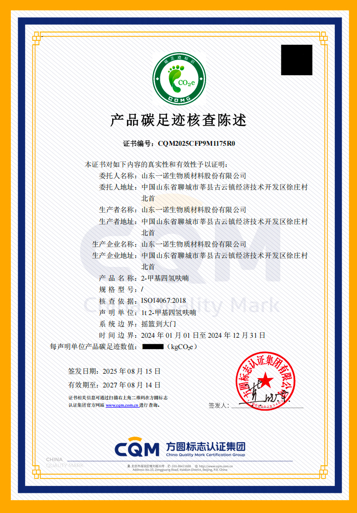 經(jīng)認(rèn)證的產(chǎn)品為 2-甲基四氫呋喃(2-MeTHF)。該產(chǎn)品以可再生非糧生物質(zhì)玉米芯替代石化資源,從源頭減少碳排放。憑借高溶解力、化學(xué)穩(wěn)定性及低環(huán)境風(fēng)險(xiǎn),2-MeTHF 已廣泛應(yīng)用于醫(yī)藥合成、農(nóng)化配方和聚合物生產(chǎn)等領(lǐng)域,是推動(dòng)化工產(chǎn)業(yè)綠色轉(zhuǎn)型的重要原料。